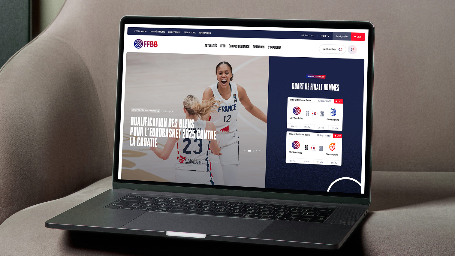 Nouveau site et portail internet : architecture claire, contenus riches, mise en avant des équipes, compétitions et opportunités d’engagement