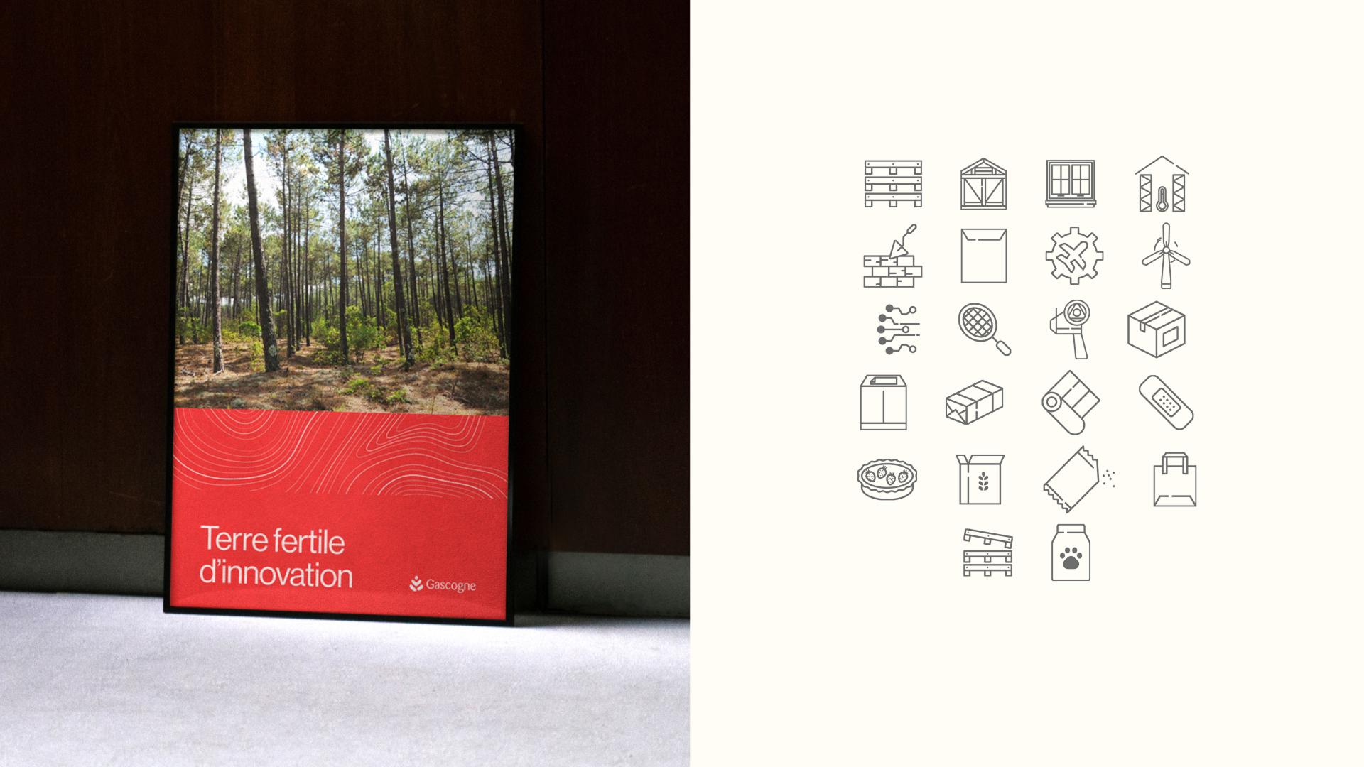 C’est une identité visuelle refondue en profondeur. Son point de départ : la matière bois et le territoire landais. De là, un système graphique a été conçu, capable de se décliner pour illustrer les spécificités de chaque activité, tout en garantissant une cohérence globale. Gascogne passe ainsi d’une image éclatée à un univers unifié : un langage de marque qui fédère ses quatre branches, incarne son savoir-faire et projette sa vision d’avenir.