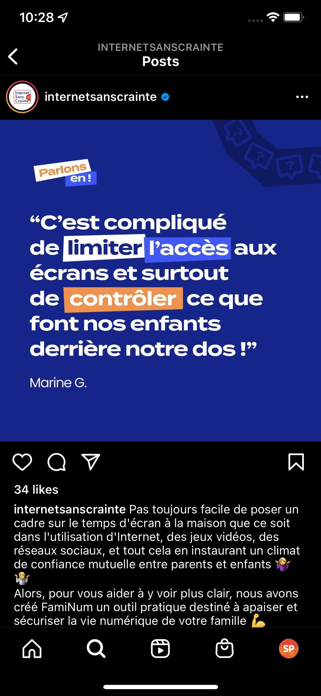Intéresser un maximum de parents au lancement du compte Instagram Internet Sans Crainte.