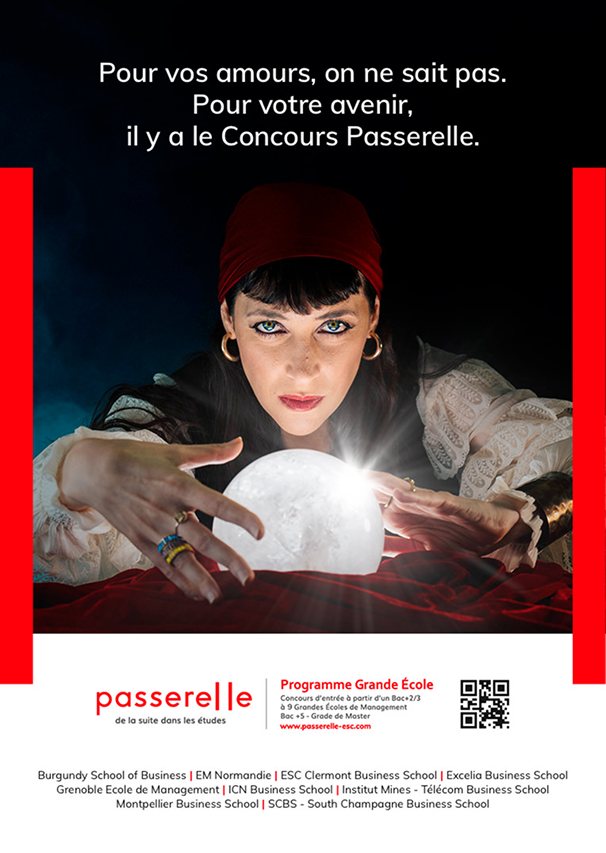 Sweet Punk a joué sur le contraste entre l’aléatoire de la voyance et la solidité d’un concours reconnu. Dans la campagne, les symboles mystiques – cartes, boules de cristal, atmosphères spirituelles – deviennent des clins d’œil ironiques : là où une voyante brouille l’avenir, Passerelle l’éclaire avec des perspectives tangibles. Une manière de détourner l’imaginaire du destin pour réaffirmer que l’avenir scolaire ne se joue pas au hasard, mais se construit avec le bon concours.